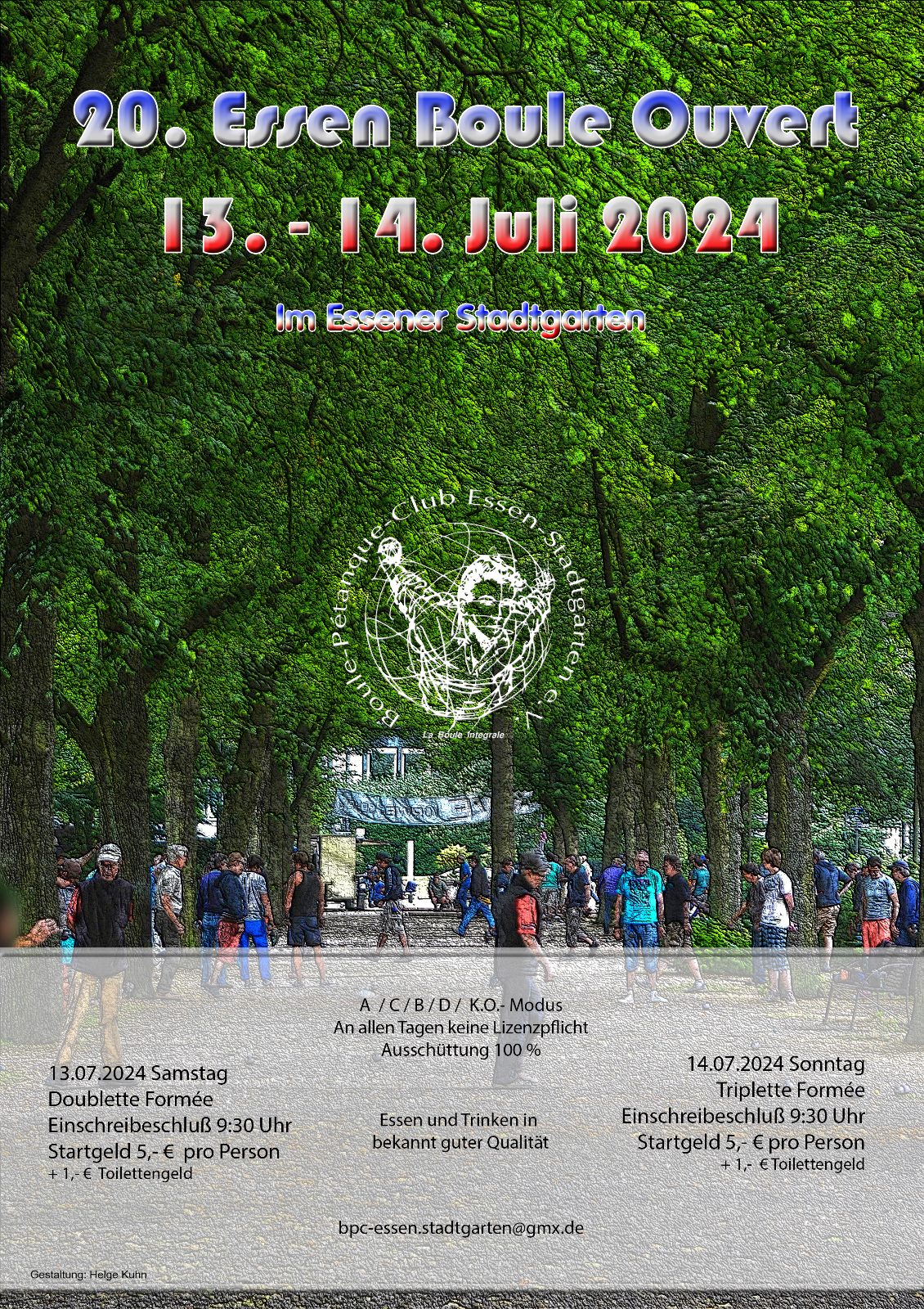 Das 20.Essen Ouvert findet dieses Jahr am 13.7.2024 (Doublette) sowie 14.7.2024 (Triplette) statt.
